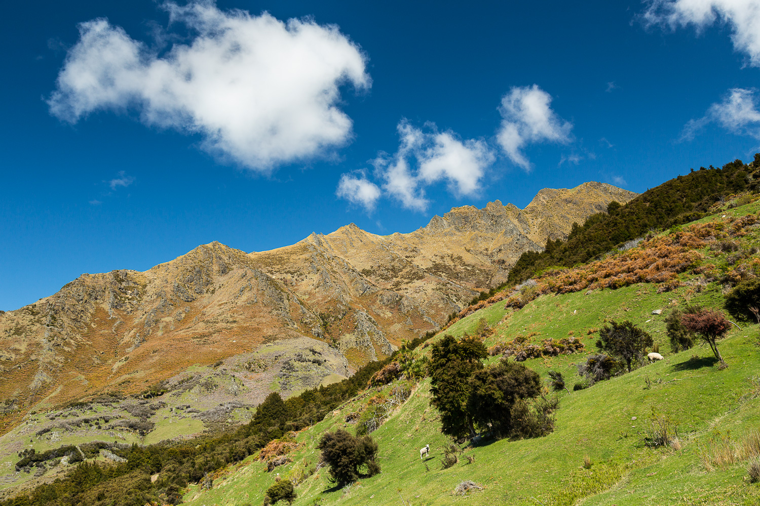 Soon after, we cross farm land and start heading up towrads the alpine terrain. After a few stops with views of the Lake Hawea, the terrain opens up and let’s us admire the breathtaking view of the Lake Wanaka and Lake Hawea After a nice lunch and lots of photos we’ll start our descent.